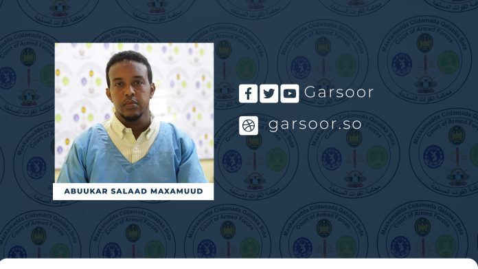 Garsoorka Maxkamadda Ciidamada oo waqti ku filan siisay dhinacyada dacwadda ayaa ugu dambayn maanta ku Xukuntay, Abuukar Salaad Maxamuud Shan-sano oo xabsi ciidan ah.